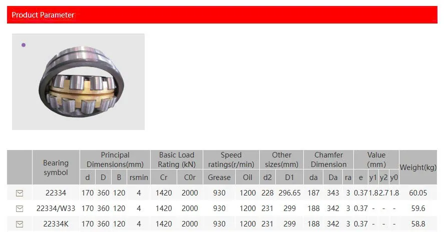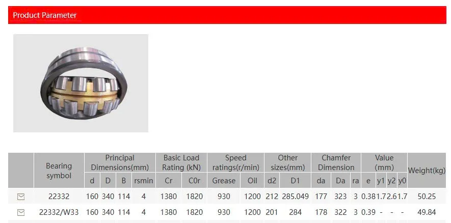 Thông số kỹ thuật vòng bi 22332, 22334 AGA