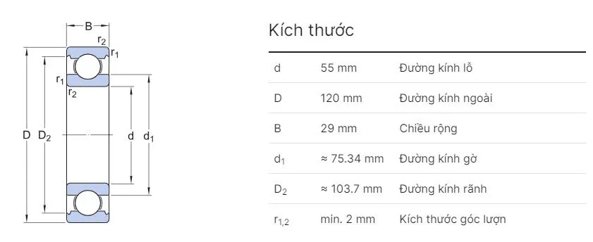 Tải trọng động (Cr) | 61.8 kN | Chịu tải quay liên tục |