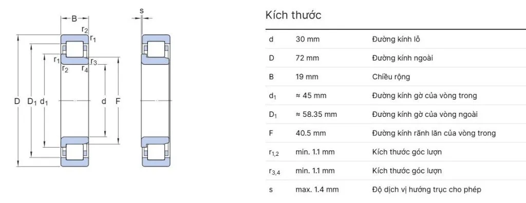 Kích thước 30×72×19 mm Đường kính trong × ngoài × bề rộng
