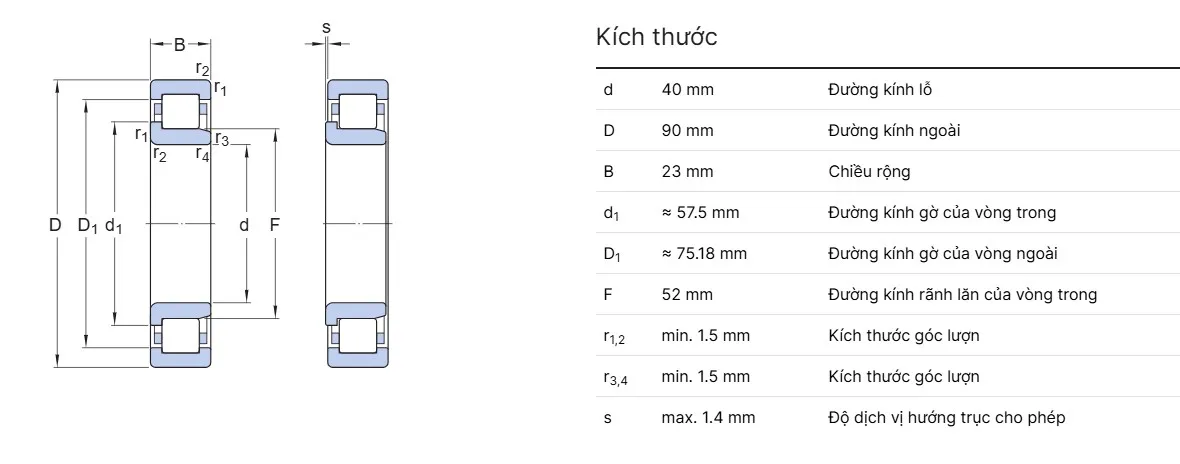 Với thiết kế tối ưu, vòng bi đũa NJ 308 là lựa chọn lý tưởng cho các hệ thống máy móc yêu cầu hiệu suất cao, bền bỉ và ổn định.