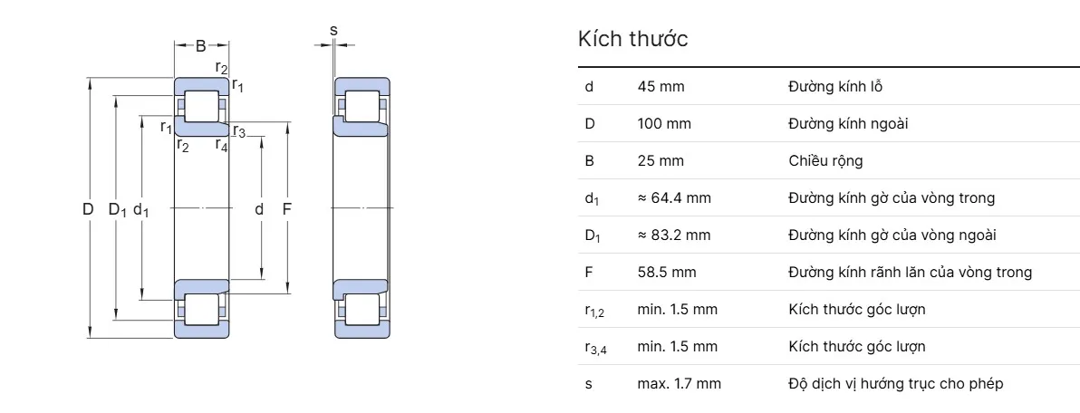 | Đường kính trong (d) | 45 mm | Lắp vừa cho trục 45 mm |