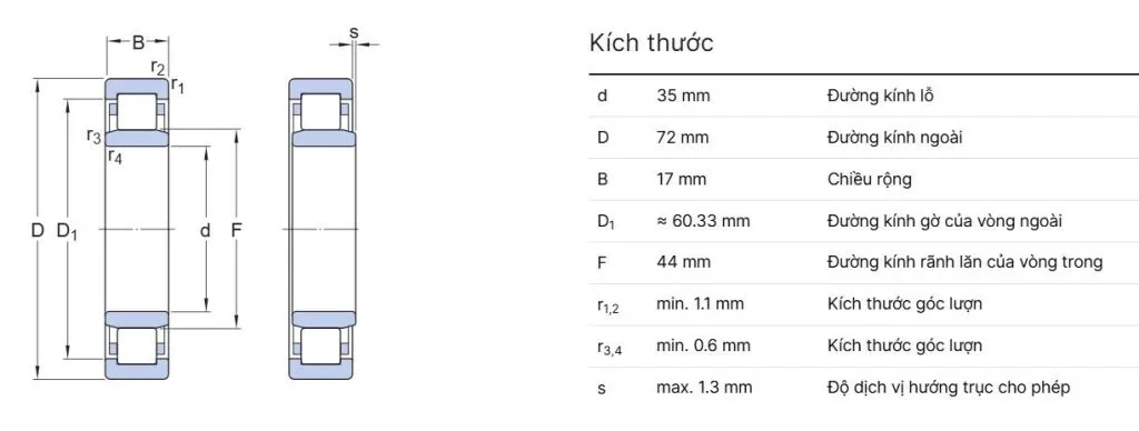 | Kích thước (d × D × B) | 35 × 72 × 17 mm | Đường kính trong × ngoài × bề rộng |