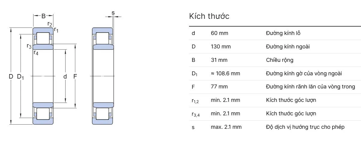 | Tải trọng động (Cr) | 147 kN | Khả năng chịu lực khi hoạt động |