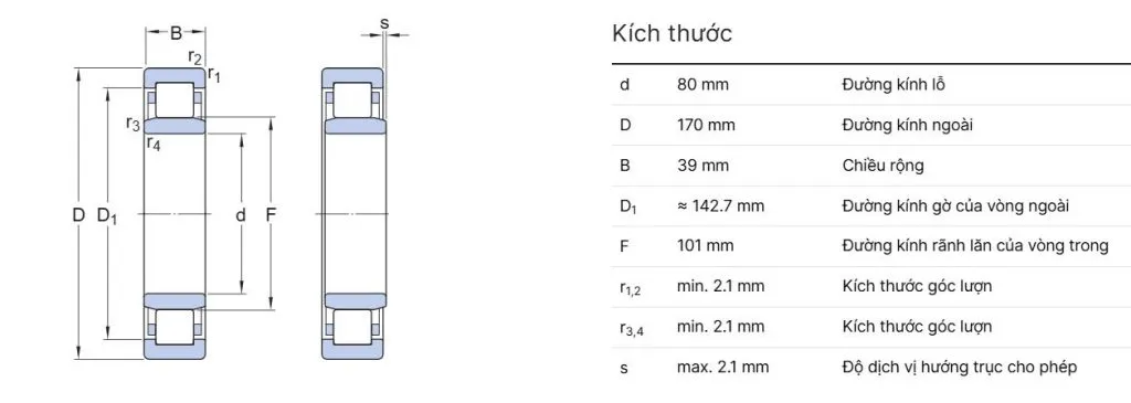 | Kích thước | 80 × 170 × 39 mm | Đường kính trong × ngoài × rộng |