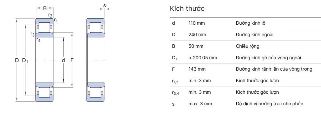 | Tải trọng động (Cr) | 525 kN | Chịu tải khi vận hành |