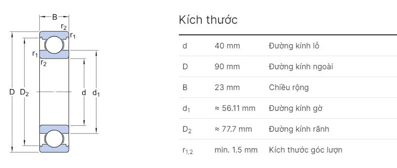| Tải trọng động (Cr) | 41 kN | Chịu lực liên tục khi vận hành |