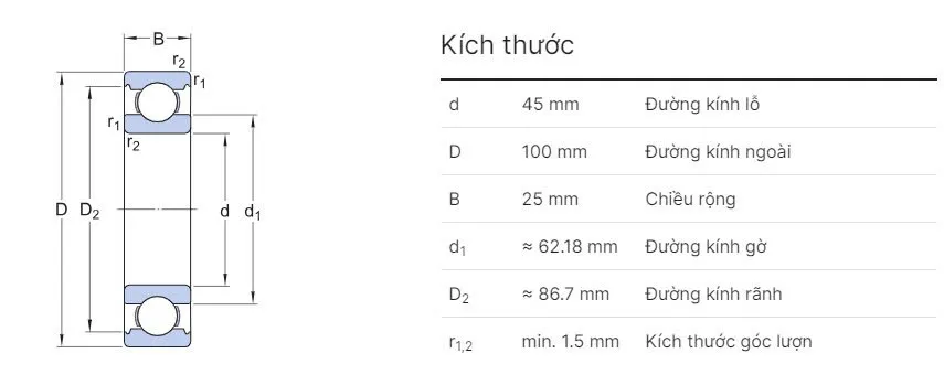 | Kích thước (d x D x B) | 45 x 100 x 25 mm | Chuẩn ISO – dễ thay thế |