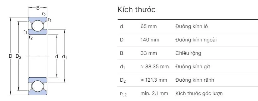 | Tải trọng tĩnh (Cor) | 59.5 kN | Chịu sốc tải khi máy khởi động hoặc dừng |